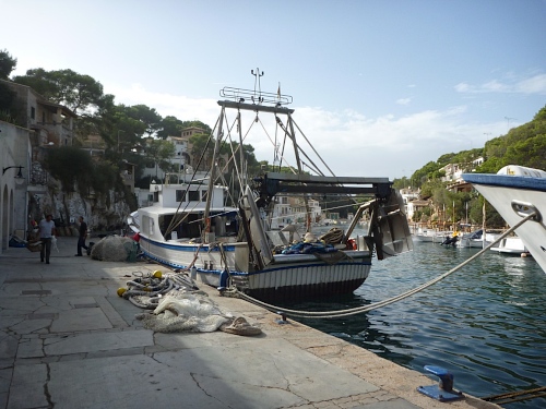 Nach Cala Figuera kommen Künstler aus ganz Spanien. Das Wasser der kleinen Hafenbucht schwappt bis auf die Terrasse der winzigen Ferienwohnung. Gerade wird der tägliche Fischfang auf kleine Transporter der Edelrestaurants verladen. Ich habe Hunger, doch man verkauft nur an die Gastronomie. „La Bodega de la Maratona ParaTi“, so heißt nun ein kleines Restaurant. Ich bin Neukunde, erhalte eine Palette Sardinen für 2 Euro.