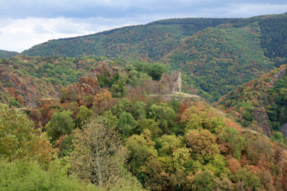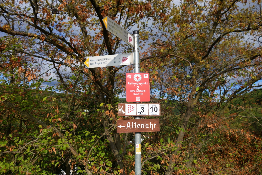 Der erste Weinberg kommt. Weithin sichtbar grüßt die Burg Are. Die Ruine thront auf 240 m Höhe über dem Ahrtal. Die Höhenburg wurde Ende des 11. Jahrhunderts erbaut. Eine Zeitlang diente sie als Staatsgefängnis der Kölner Erzbischöfe. 1690 wurde die Burg erstmals erobert. 1714 wurden die Mauern der Burg gesprengt. Die Ruine wurde 1997-1999 saniert, es drohten Steine auf die unter der Burg verlaufende Bundesstraße herabzustürzen. Seit der Sanierung steht die Burgruine unter Denkmalschutz.