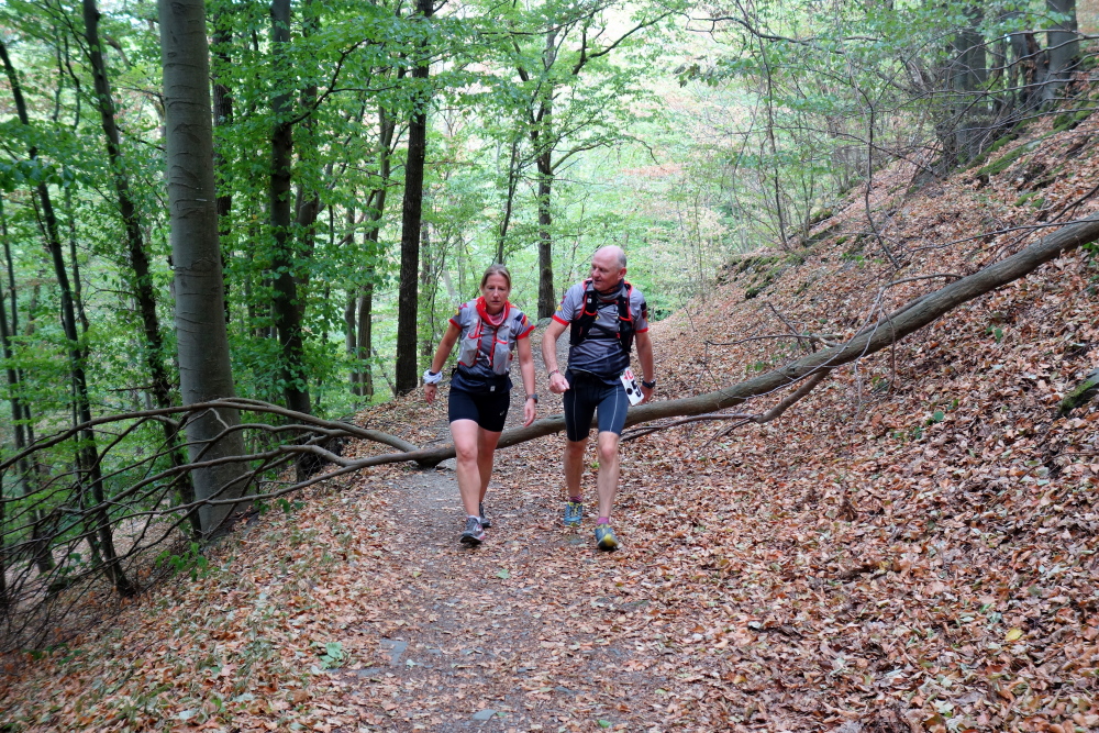 Um 9.32 geht es los. Zunächst laufen wir eine kurze Runde um die Martinshütte. Auf einem Hügel gegenüber sehen wir die Reste der Burgruine Are. Das Zeitlimit von 8,5 Std. für den 52er dürfte kein Problem für uns sein. Obwohl, auf der Veranstaltungswebsite wird der 52er als sehr schwer bezeichnet!