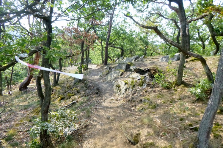 Anspruchsvolles Geläuf, Steine und Wurzeln würzen die Strecke. Weiter unten wird’s einfacher und bleibt dann so. In weiten Bögen führt die Strecke ins Tal zur Ahr, über eine kleine Brücke drüber und links den weißen Pfeilen hinterher.
