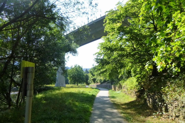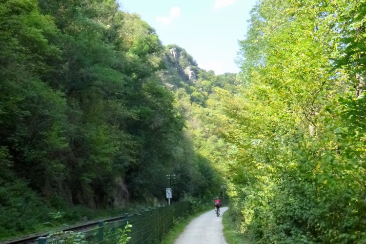 Ruhig und flach folgt die Strecke dem Fluss im Schatten. Man kann hier tatsächlich an und das Wasser, ohne sich die Ohren zu brechen. Kühling tut not!