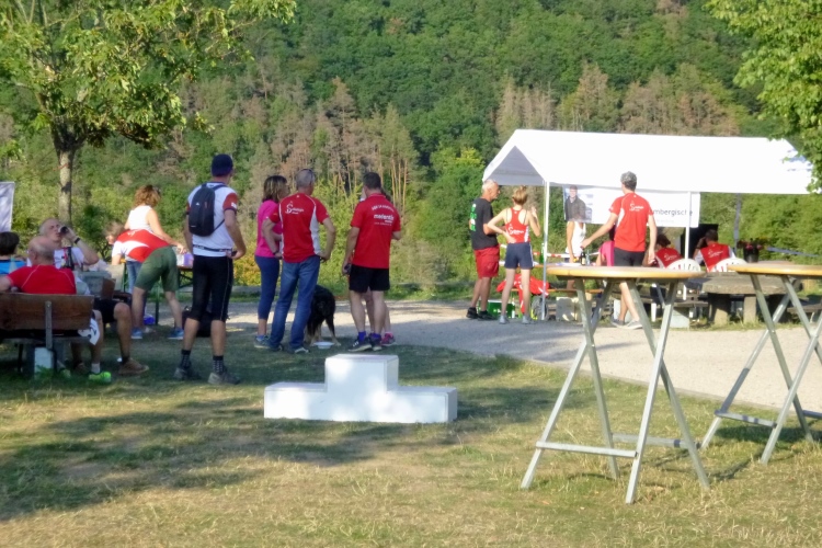 Die Zielverpflegung ist klasse, die Siegerehrungen sind zwischendurch. Rosen Wein und Sekt für die Sieger, Freiluftduschen für die, die wollen. Bei nunmehr 32° ist so ziemlich bei allen die Luft raus, kalte Getränke tun sehr not und runden den Tag ab. Ach ja, ein schönes und reichhaltiges Kuchenbuffet in der Hütte sei auch sehr gelobt!