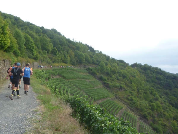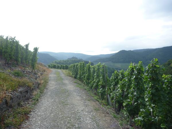 700 Meter beträgt die Runde zu Ehren der Burg Are, Namensgeberin für den Ahrwein. Nochmals Jubel durch viele Einheimische, die nicht erschienen sind, und unsere Tour setzt sich relativ schnell in den sonnigen Weinbergen fort.