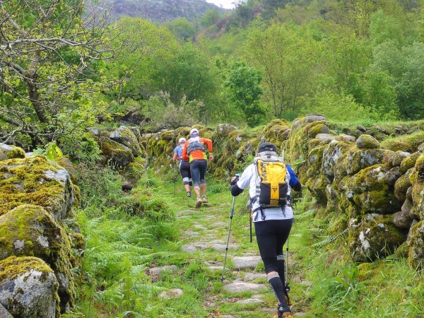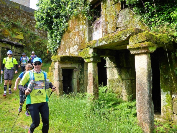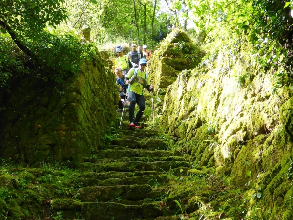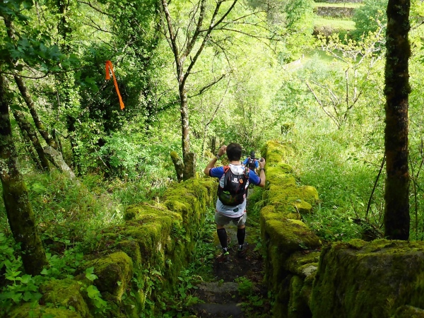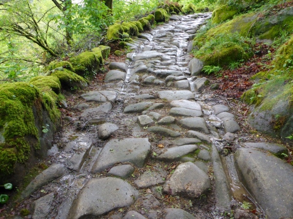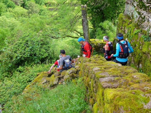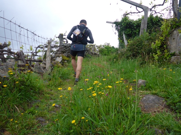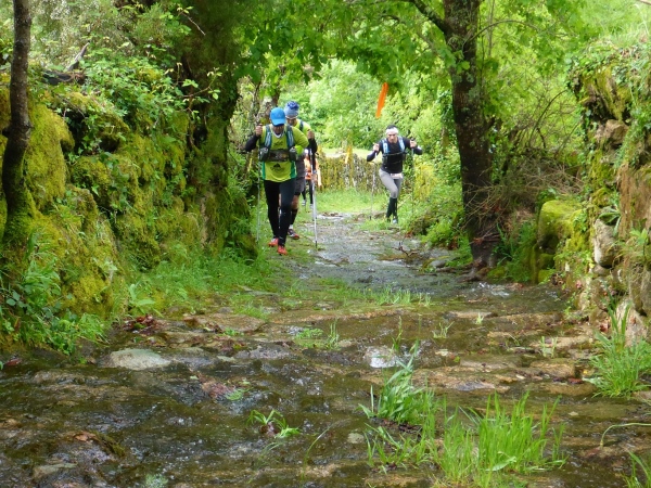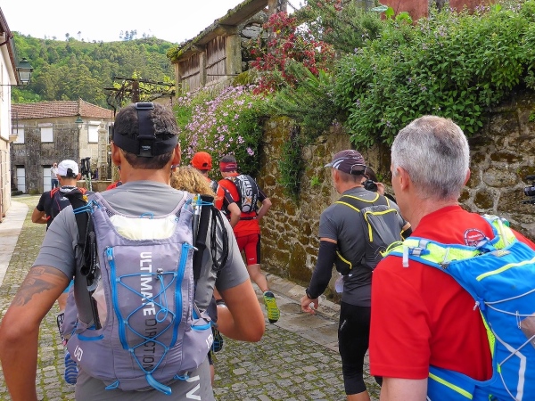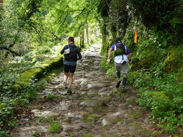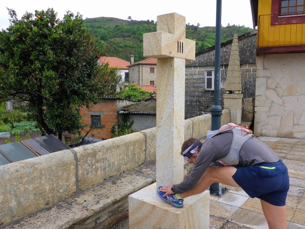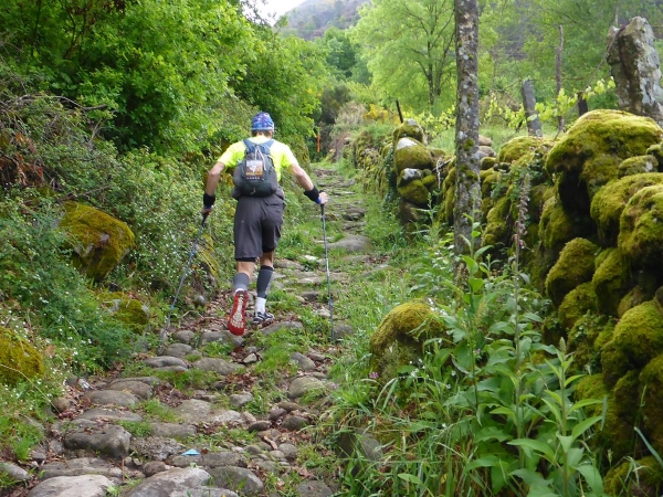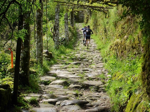 Salva bleibt verschwunden, wir laufen mit 1,5 Stunden Verspätung los. Steil geht es die uralten Wege hinauf. Es sind Wege, die noch die Römer angelegt haben. Für mich unverständlich, wie man es anstellte, so riesige Granitblöcke zu Wegen zu verbauen. Portugal muss mal ein reiches, arbeitsames Land gewesen sein. Die Wege werden von uralten Weinstöcken überdacht. Da schwebt Salva an mir vorbei, den Berg hoch. Geiler Laufstil!