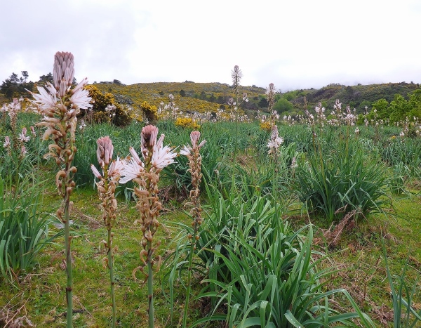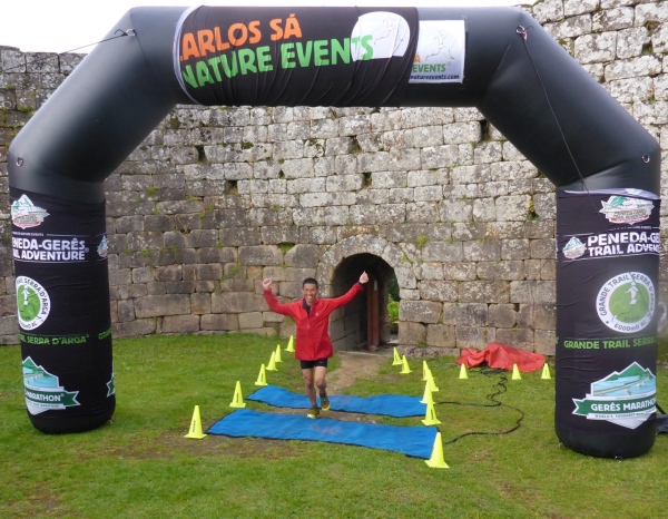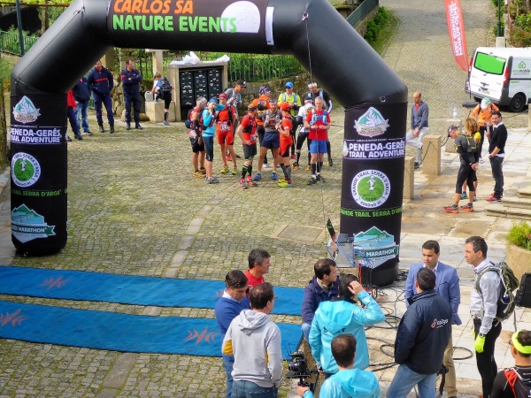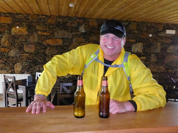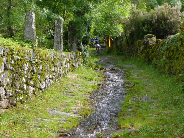 Die Gegend weist kleine Hügel auf, die mit Granitfindlingen garniert sind. Wasserläufe durchschneiden die vom Stechginster dominierte Landschaft. Es gibt hier oben ein Restaurant, das örtlich aufgewachsene Steaks serviert, leckere Lammrippchen oder den geräucherten Schinken auf saftigem Maisbrot. Als ich vom VP in das Restaurant abbiege, weil ich Cerveja brauche, ruft Maria vom Versorgungsstand der Wirtin zu, dass meine Getränkerechnung auf Kosten der Organisation geht. Man stellt mir zwei 0,1 Liter Fläschchen Bier auf die Theke! „Mas grande! Bitte!“