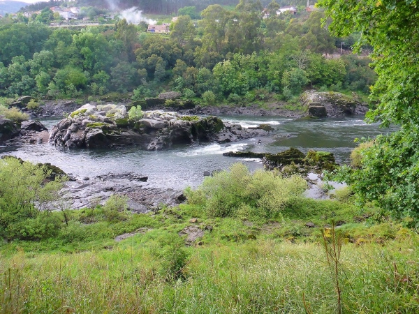 Mein Ziel ist Megaco, dort gibt es bis 16 Uhr Mittagessen, das kann ich schonmal abhaken! Melgaco liegt am Rio Minho, durch den die Grenze zu Spanien verläuft. Die Brücken sind original römische Bauwerke. Auf einem Felsen inmitten des Flusses stehen drei Männer und ziehen ein Monster aus einer Fischreuse. Lange noch höre ich das fiese, nasse Klatschen des Knüppels, mit dem die Fischer dem Tier den letzten Segen geben.