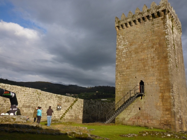 Im Innenhof der Burg ist unser Ziel. Die Burg (12. Jahrhundert) ist vom ersten ortugiesischen König. Man fährt mich ins Hotel, eines der Oberklasse. Mit nassen Klamotten setze ich mich an den weiss gedeckten Tisch. Es gibt wieder diese gute, heisse Kohlsuppe mit viel Speck drin. Dann folgt eine knusprig gegrillte Forelle. Die Vorfahren von Steven kommen aus Laubach, vom damals noch nicht vorhandenen Flughafen Hahn. Es gibt Rotwein, dann schalfe ich ein.