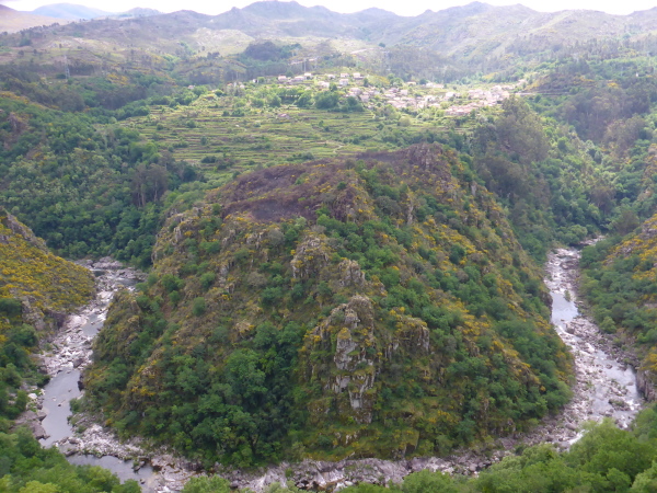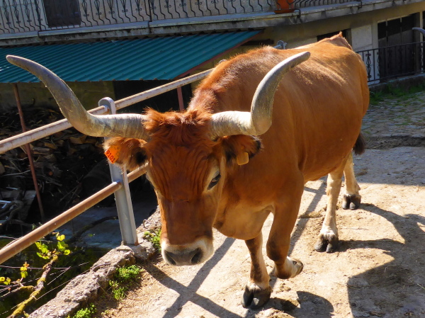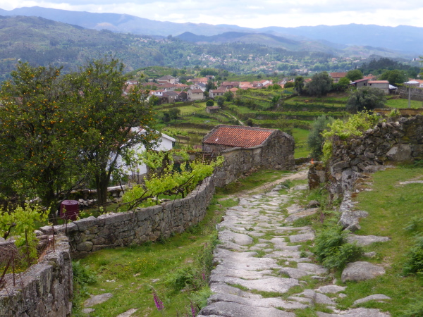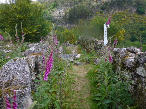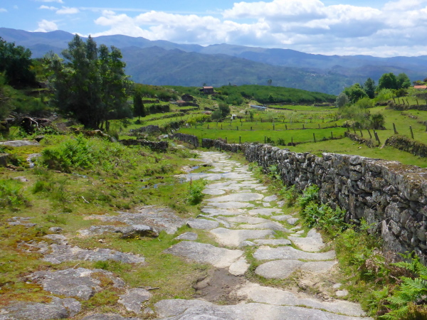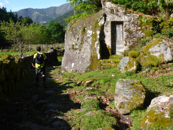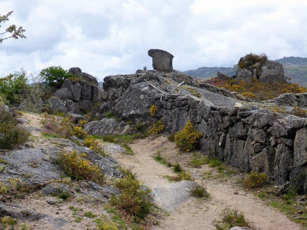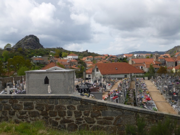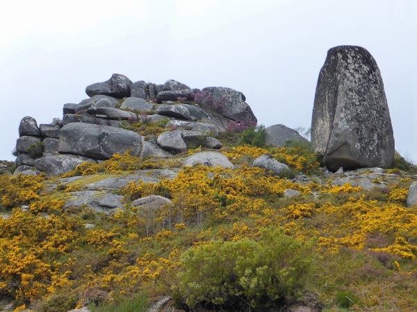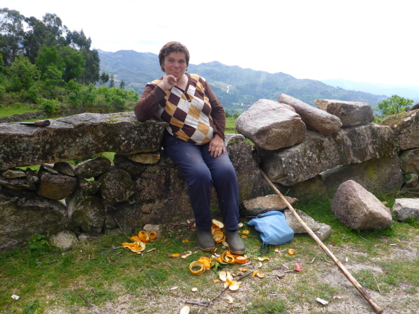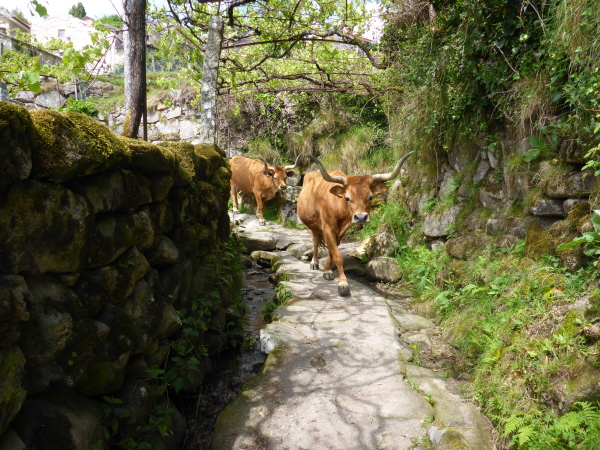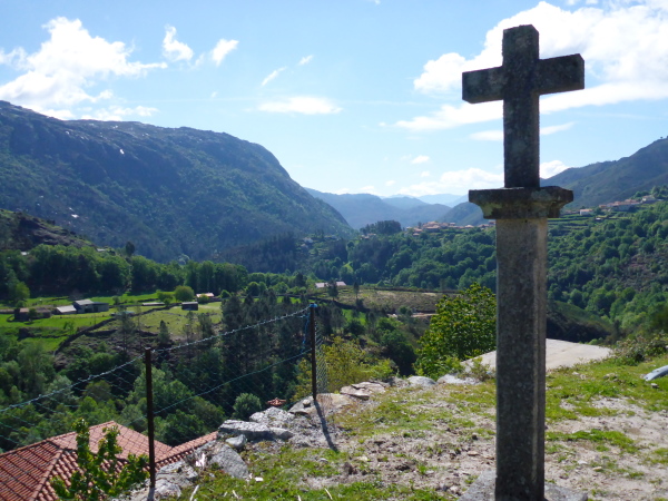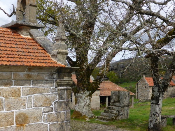 In Soajo, an der VP hole ich ZumZum ein. Hier gibt es unzählige Megalithanlagen. Diese vorgeschichtlichen Bauten haben einen Durchmesser von 10-30 Metern, sind teils komplizierte Bauwerke aus Erde mit Steineinbauten. Sogar Felsmalereien sind erhalten. Kleine Häuser liegen an steingepflasterten Strassen, auf dem Dorfplatz steht ein einzigartiger Pranger, der 1910 zum Nationaldenkmal erklärt wurde. Seltsam ist das freundliche, menschenähnliche Gesicht in dem Pranger.
