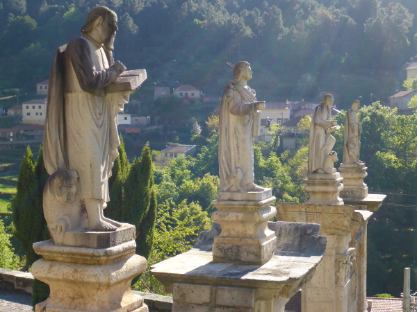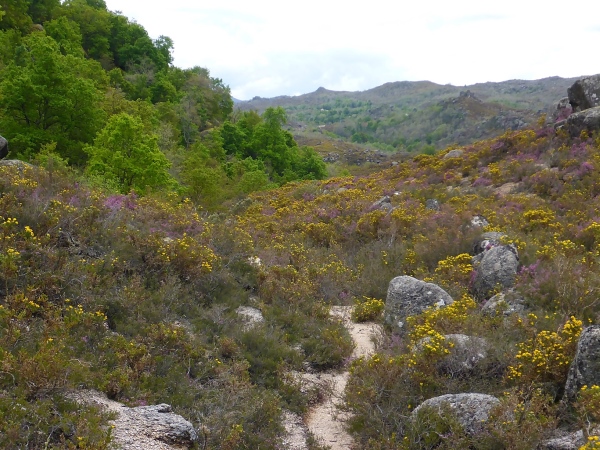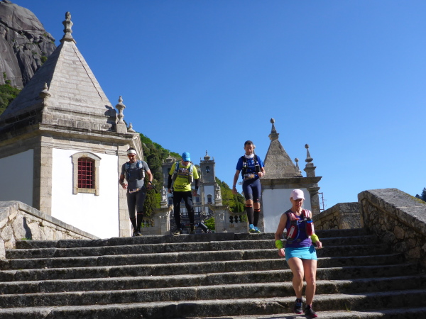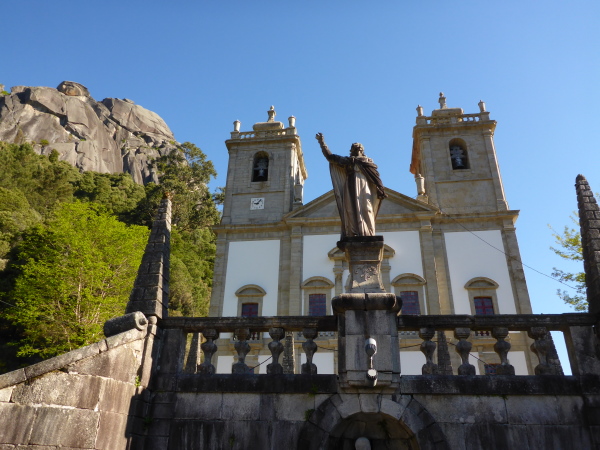Irgendwann, gegen Abend laufe ich ins Ziel, am Heiligen Granitberg Penedo das Meadinhas, der hier gewaltige 300 Meter steil emporragt. Die Wallfahrtskirche Santuário de Nossa Senhora da Peneda (Heiligtum unserer Lieben Frau von Peneda) ist ein Prachtwerk aus dem 17./18.Jahrh., wurde aufgrund der Erscheinung der Heiligen Maria im 13. Jahrh. gebaut und verbreitet in dieser unberührten, majästetischen Berglandschaft eine heilige, eine andächtige Stimmung. Auf der 300 Meter langen Treppe gibt es 20 Kapellen mit Darstellungen aus dem Leben Christi.