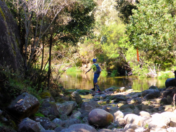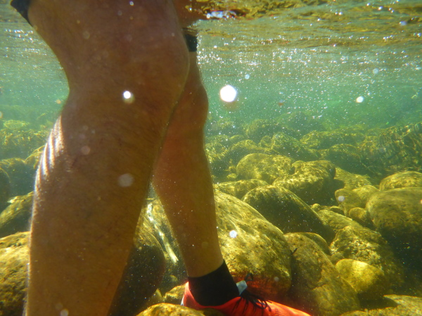 Ein wunderwunderschönes, grünes, bemoostes Flusstal, in dessen klarem Wasser sich über dem sandigen Grund mein verbissenes Gesicht spiegelt. Die Erinnerung an diesen kühlen Grund will ich mit Euch nicht teilen, auch lassen mein Wortschatz keine Schilderung dieser Schönheit zu.