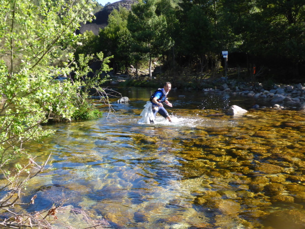 Über den Touvedo Staudamm ist es ätzend zu laufen, drüben ist Spanien. Der Zieleinlauf im Castelo de Lindoso (13.Jahrh) ist bewegend. Das Castel bewacht die schmale Schlucht des Rio Lima. Am Burgabhang stehen 50 Maispeicher (17.Jahrh), die hier Hórreos genannt werden. Ein Wunderbares Zielgebiet. Ganz große Freude. Ganz Klasse organisiert! Es sollen sich die Reliquien von Maria Magdalena hier befinden, jedenfalls werden diese am 2.Juli auf einem Holzkarren durch die Strassen getragen.Mich kannste jetzt auch tragen!