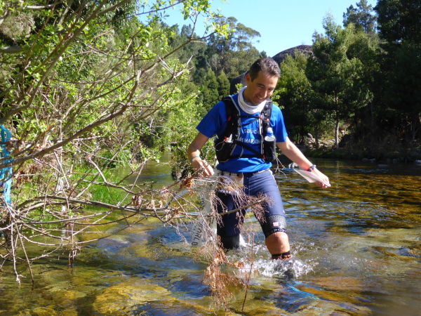 Der Lauf die ewig langen, heiligen Treppen hinunter ins Tal ist traumhaft. Es wird der einzige sonnige Tag auf dieser Reise sein. Die Sonne lässt fetten Nebel aus den Wiesen aufsteigen. Prallgefüllte Orangenbäume beleuchten meinen Weg, bis wir zu einem diamantenen Fluss kommen. Der Fluss ist eiskalt und glasklar.Viele Läuferfreunde sind hier versammelt, schiessen Fotos und beobachten, wie Kameraden auf den moosigen Steinen abrutschen, sich lachend und freiwillig ins glitzernde Wasser fallen lassen. Ewige Zeit vergeht, bis ich die weltweit ersten Unterwassertrailfotos im Kasten habe. Viel, viel Zeit.