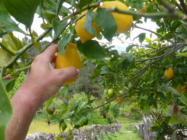Azaleen säumen jetzt meinen Weg. Ich pflücke Zitronen von den fetten Bäumen, dröppel mir reichlich den Saft gegen meinen Gestank über das Hemd. Carlos Sá ist vor mir. Er will unbedingt ein Foto mit mir und ZumZum vor dem Grafity „Cunhas City“. Cunhas ist ein präpubertäres Schmutzwort, und den Trail, den Carlos macht, der ist auch total präpubetär.