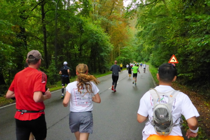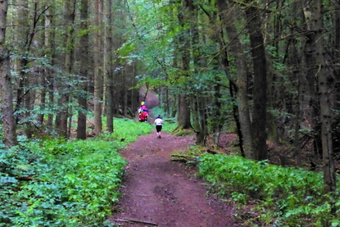 Bei 37 geht es durch´s Wohngebiet, dann wieder uriger Wald, dann wieder Wohngebiet, und sehr, sehr viele Verpflegungsstellen. Es gibt wieder etliche, kurze, flache Steigungen, alles ok. Auch die Trailabschnitte sind nicht schlecht.