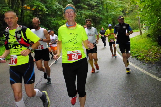 Meine Empfehlung: Bei einer Startzeit von 10:30 sind Kind und Kegel eventuell rechtzeitig wach. Du schickst dann den Anhang per Shuttlebus hinauf auf die Felsensteige und läufst locker diesen Marathon. Trefft Euch nach sagen wir mal 6,5 Stunden in der Zielhalle, weil die Laufstrecke unglaublich hart ist, ungewöhnlich fordernd, einsam und überall wilde Tiere und Dornengestrüpp. Wildschweine und Waldmenschen, die kleine Kinder fressen, und diese grausame, steile Fumbach! Mensch. Das ist kein normaler Marathon! Wenn Kegel fragt, wieviel Du getrunken hast und was Du gelaufen bist, dann sagst Du: „NIX“ und gibst ihr einfach wortlos die Autoschlüssel.