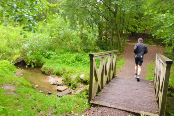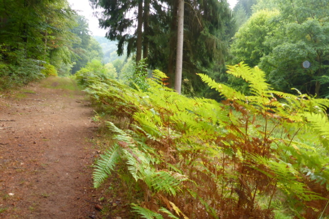 Was jetzt beginnt, ist eine wunderschöne Strecke. Vorbei am Gemers- und Seibelsbachbrunnen, Felsen und Farnen. Verschiedene Schleifen werden gelaufen, dann den Langenbach hoch und runter. Zu sehen gibt es nichts, ich mache sogar Fotos von roten Brommbeeeren und Pferden. Optimales Lauf- , aber nicht Fotorevier.