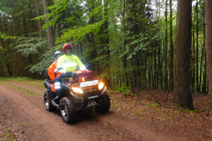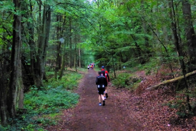 Am kleinen Fluss Rodalb ist wieder ein Verpflegungspunkt. „Alb“ ist keltisch und heisst Fluss. „Rod“ weist auf eine Rodung hin, oder auf den roten Sandstein. Während meines stillen Laufes denke ich an eine andere Zeit, an die der Jäger, die hier vor 600.000 Jahren Schutz in den Höhlen und unter den Überhängen fanden. Bei km 12,5 geht es über den nördlichen Stollen des Beinahe-Nato-Hauptquartiers. Gerade springt eine Lüftungsanlage des Bunkers an und ein wenig weiter ein Reh über die Laufstrecke.