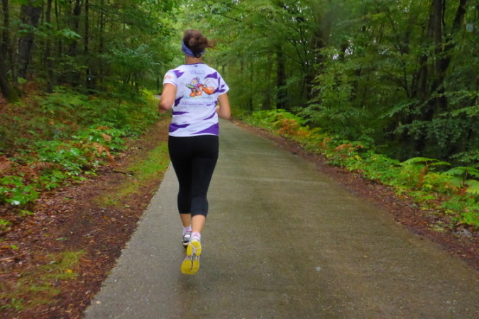 Es wird düster, der Neuffer Park, einst Schuhfabrik (1894), jetzt Gewerbepark und Bürokomplex, hat dichtes Laubwerk zu bieten. Am Dankelsbach empfängt uns der dunkle Pfälzer Wald. Damit musste ich rechnen, denn so nennt sich dieser Marathon. Der Bach war über tausend Jahre mit Fischteichen garniert, der Name „Dankels“ erinnert noch daran: Dank=Tank= étang.