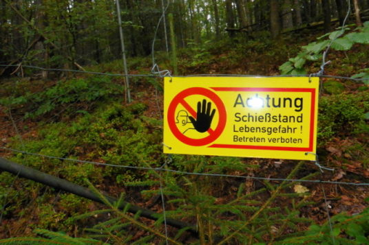 Die Fumbach ist sonderbar. Überall Absperrungen wegen Schusswaffengebrauchs, riesige Holzstapel, dichtes Gestrüpp und die unheimlichen Sehschlitze der Höhlen, die wie Flakbunker oder Plattenbauten auf mich hinuntergrinsen. Die Wege verwandeln sich in überwucherte, schmale Trails.