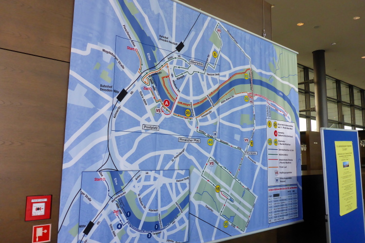 Die zweite Runde ist nicht identisch mit der ersten, außer die Umrundung des Großen Gartens. Bei der Überquerung der Augustusbrücke hat man einen Blick auf das Ausmaß der Sanierung. Der Zahnarzt würde sagen, wir müssen das Implantat erstmal einwachsen lassen, danach essen sie nur noch weiche Sache. Also, Autoverkehr wird es auf der Brücke nie mehr geben.
