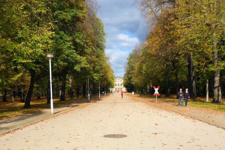 Das Palais im Großen Garten, ist nicht ganz so prunkvoll wie die Hofburg, ist ja auch nur ein Lustschloss. Nachdem Johann Georg IV das Lustschloss verstarb, erbte es dessen jüngerer Bruder August der Starke, der es reichlich nutzte, wie ich eingangs erwähnte. Eines von den 354 Kindern war der Thronfolger, Kurprinz Friedrich August, der hier seine Hochzeitsnacht verbrachte. Aber auch die Damenwelt war seinerzeit nicht zimperlich und veranstaltete sogenannte Venusfeste. Der Venustempel stand auf der rechten Seite, dort wo ein Gipskübel jetzt unseren Wendepunkt markiert. Die Kronprinzessin von Österreich, die „einzige“ Frau vom August dem Starken, hätte mich bestimmt zur Party in ihren Venustempel eingeladen! Marathonläufer sind doch sexy und hier laufen nicht so viele, dass sie mich nicht von der Laufstrecke geholt hätte!