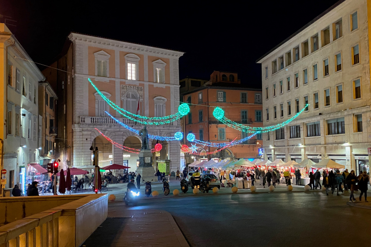Auf der Piazza XX Settembre wieder eine schöne Christbaumgruppe, dahinter die weißen Logge di Banchi mitsamt einem italienischen Weihnachtsmarkt. Von hier führt der Corso Italia direkt zum Hauptbahnhof, gesäumt von vielen Geschäften und Bars. Wer es ein bisschen ruhiger will und nette Kneipen und Restaurants sucht, wird östlich davon im Viertel San Martino fündig.