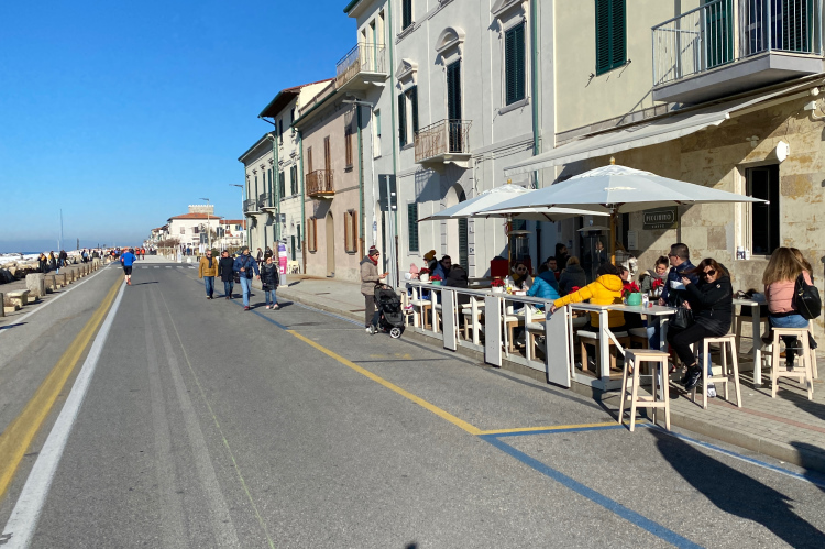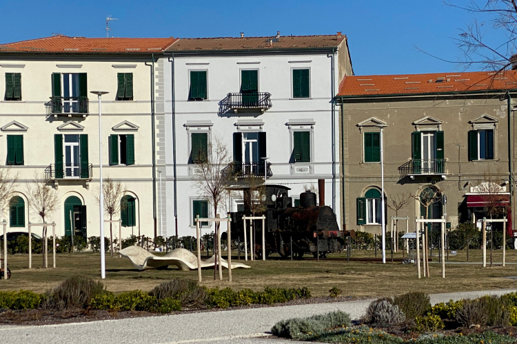 Marina di Pisa war einer der ersten Badeorte in Italien. Er spiegelt die großzügige Architektur der Mitte des 19. Jahrhunderts wieder. Auf einer Postkarte aus dem Jahr 1899 sieht man noch einen breiten Sandstrand vor der Promenade. Dieser ist durch Erosion komplett verschwunden. Die Küste wird nun mit schneeweißen Steinen und Kiesflächen geschützt.An der halbkreisförmigen Piazza delle Balneari steht die Dampflokomotive Dante Alghieri. Sie fuhr hier bis 1920.