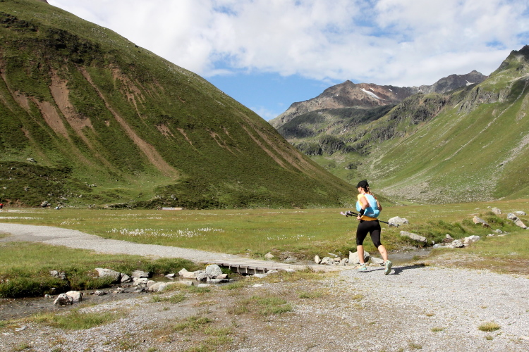 Im Pitztal gibt es dazu ideale Möglichkeiten, noch dazu zum Teil auf Original-Streckenabschnitten des Pitz Alpine. Am Anfang helfen Kurse unter professioneller Anleitung, teilweise auch speziell für Frauen. Die einzelnen Strecken sind eingeteilt in Schwierigkeitsgrade, wie man es von Wanderwegen und Klettersteigen her kennt. Dazu gibt es genaue Angaben zu Distanz, Höhenmetern und Laufzeiten. So lernt man in ein paar Tagen kennen, was Trailrunning heutzutage beinhaltet: Steile Bergauf- und Bergab-Passagen, extreme Steige mit Seilsicherungen, Schnee- und Gletscherpassagen. Und das, wenn man Glück oder Pech hat (je nach Sichtweise), bei jedem Wetter und wahlweise bei Tag und in der Dunkelheit.
