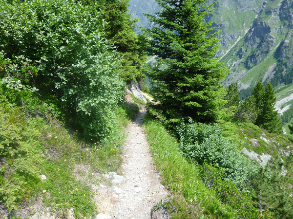 Ein paar Meter weiter, an der Liftstation, geht es auf dem Panoramatrail wieder runter. Steil und unwegsam durch blühende Felder von Alpenrosen, schön anzuschauen, aber nicht minder steil als der Herweg, dafür deutlicher unwegsamer und trailiger. An dessen Ende steht Mario und hält nach seinen Schäfchen Ausschau. Das Schlimmste ist überstanden, meint er und erklärt mir noch den Weg zum nächsten Fixpunkt, der Braunschweiger Hütte.