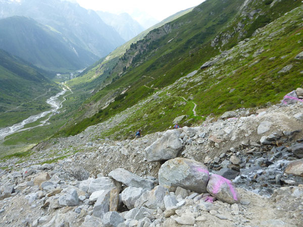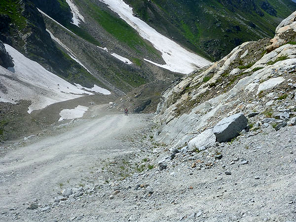 Direkt oberhalb vom Gletscherstübele endet im Tal dieser Gebirgstrail. Fast 5 Stunden habe ich für den 11 km langen Abschnitt benötigt, so lange wie noch nie in meinem Leben für diese Distanz. Ich freue mich doch tatsächlich, jetzt auch wieder auf einer stinknormalen Straße richtig laufen zu können.