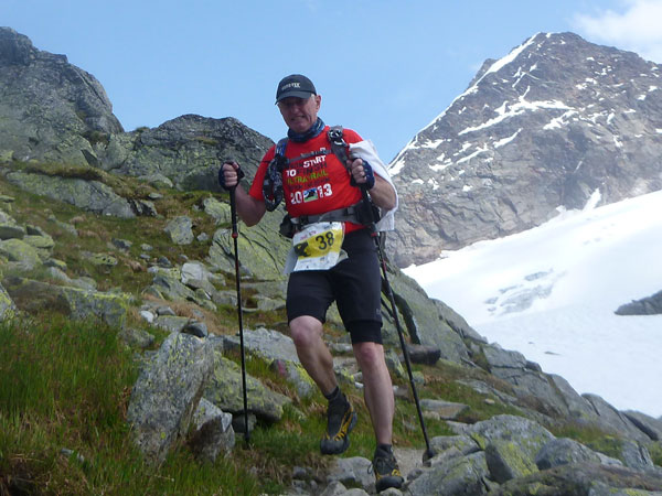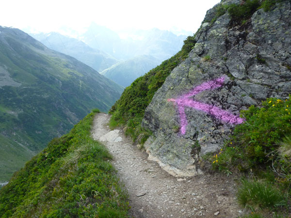 Aber wann kommt endlich diese „verdammte“ Braunschweiger Hütte in Sicht. Ich habe keinen Schmalz mehr in den Schenkeln, mir fehlt das Gen des hier heimischen Steinbocks. Ein Fehltritt aus Schwäche könnte mich in große Gefahr bringen. Übertriebener Ehrgeiz ist hier sicherlich fehl am Platz. Ich kämpfe innerlich lange mit mir. Der nächste Aufstieg, nach Rückkehr in Mandarfen, über die Plangerossalpe beinhaltet ebenso 1.000 hm und schwierige hochalpine Abschnitte wie dieser. Dazu ein Abstieg, der einem das Grauen lehrt. Außerdem ist das Zeitlimit für den offiziellen Ausstieg in Trenkwald (km 57) um 18:30 Uhr für mich unmöglich zu schaffen. Ich entschließe mich, wenn ich zurück bin, auszusteigen. Getreu dem Motto der Veranstaltung: „Safety first“.