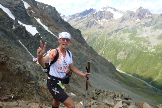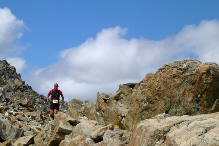 Du musst jeden Schritt wohlüberlegt setzen und immer wieder schauen, dass du in der Nähe der vielen rot-weißen Markierungen bleibst. Dann glaube ich, einen kurzen Jodler zu hören. Oder ist es ein Traum? Bin ich im Delirium? Ich täusche mich nicht. Ein Kamerad der Bergrettung lässt bei jeden Trailer, den er aufschreibt, einen Juchzer los. 2,5 Stunden bin ich unterwegs. Und bekomme trotz der schnellen Zeit einen Anschiss vom Bergler, nein zwei: „Du schnaufst ja net. Und Schwitzen tuast a net.“ Auf der Mittagsscharte sind wir auf 3080 Meter, so hoch war ich als Läufer noch nie.