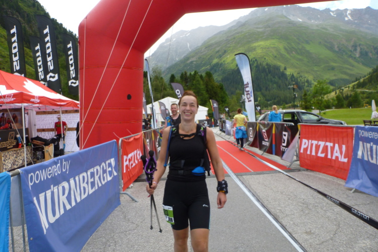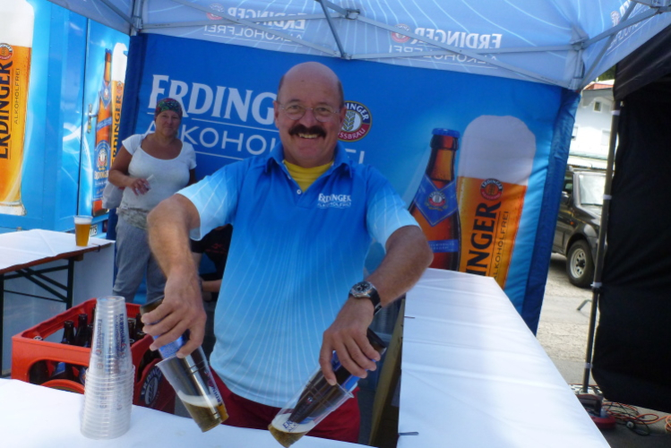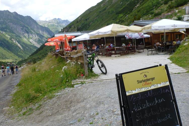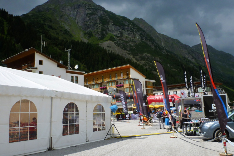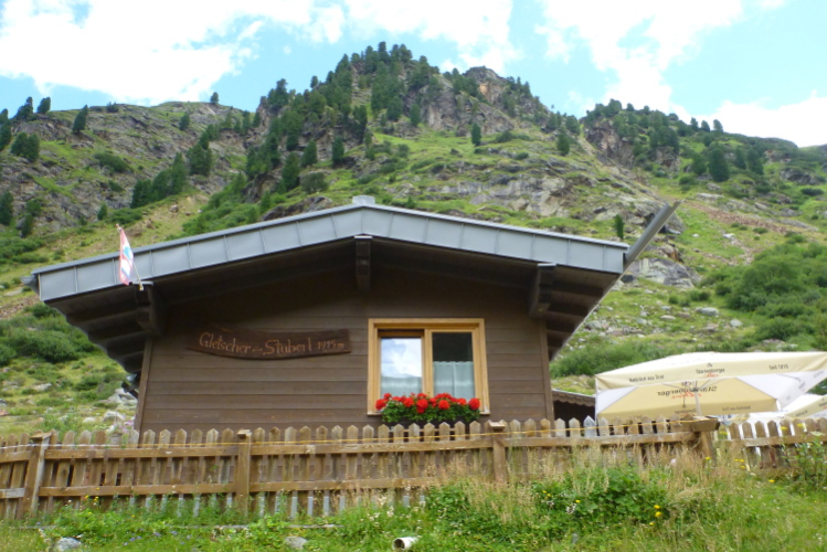 Der Abstieg wird dann einfacher. Später überholt mich eine Läuferin ohne Startnummer. Sie läuft auf einen Felsblock zu, nimmt ihr Mountainbike und radelt davon. Aha, eine schnelle Trainingseinheit. Die Besucher im Gletscherstübele (1891 Meter) schauen verdutzt, als ein schwitzender Trailläufer (ich) vorbeihastet, denn ich brauche jetzt wieder Getränke. Meine Literflasche ist ausgezuzzelt. Die letzten zehn Minuten darf ich auf bequemen Almweg rennen. Und dann biege ich auf das Startgelände ein. Verpflegung.