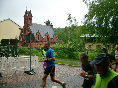 Wir verlassen den Park, biegen links ab und überqueren den Teltowkanal. In der kleinen Wohnsiedlung ist der Laufuntergrund rustikal gepflastert. Man könnte annehmen, dass der Alte Fritz hierzu den Auftrag gegeben hat und seither nichts mehr gemacht wurde. Aber solche Stücke gehören halt auch zu einem Lauf durch die Geschichte.