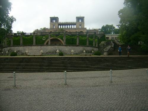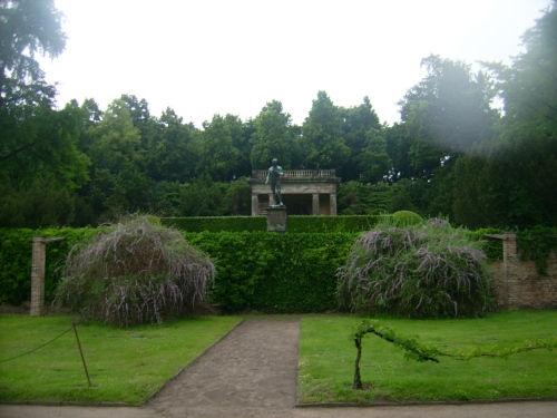 Als erstes sehe ich rechterhand die Alte Mühle. Meine Kamera mag wieder nicht das feuchte Wetter und nimmt ihren Dienst erst nach dem Vorbeilaufen auf. Es geht die Maulbeerallee entlang. Auch hier gibt es viel zu sehen: Skulpturen, Pavillons, geschmiedete Zäune, die Orangerie und der Sizilianische Garten. Es wäre fast Not, einen Reiseführer bei sich zu haben. Wer da noch einen Tag Urlaub anhängen kann, der könnte allein diesen Tag hier mit einer Besichtigungstour ausfüllen.