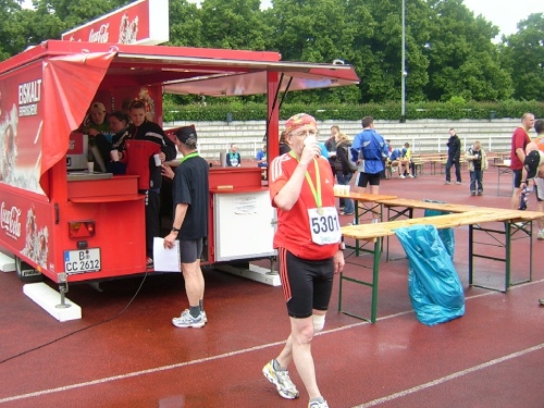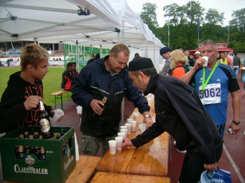 Tee mit Traubenzucker (!), Wasser, Iso, Cola, Bananen und Äpfel. Wer Pflaster brauchte, dem wurde auch geholfen.
