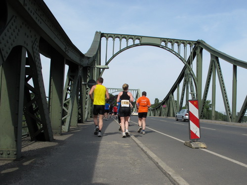 Dann zieht aber sowieso die Glienicker Brücke (km 9) die ganze Aufmerksamkeit auf sich. Seit dem 17. Jahrhundert gibt es hier einen Übergang über die Havel, die jetzige Brücke wurde 1907 dem Verkehr übergeben. Zu DDR-Zeiten verlief die innerdeutsche Grenze direkt auf der Brücke. Dreimal stand sie im Blickpunkt der Weltöffentlichkeit, als es nämlich 1962 (U-2 Pilot Powers), 1985 und vor allem 1986 (u. .a. Anatoli Schtscharanski, späterer Handelsminister von Israel) zu einem Agentenaustausch kam. Heute verläuft über die Glienicker Brücke die B 1 von Berlin nach Potsdam.