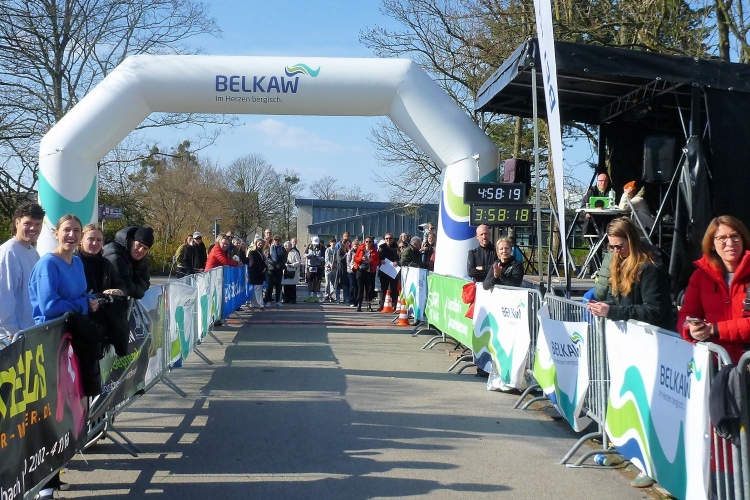 Doch vorher ist noch reichlich Zeit, sich selbige zu vertreiben. Jochen Baumhof, eine regionale Lauflegende und die graue Eminenz des ausrichtenden TV Refrath, begrüßt uns von der Bühne in der Halle und auch öffentlichkeitswirksam den schon länger nicht mehr rasenden Reporter, der sich auf diese Weise kurzfristiger Berühmtheit erfreut. Aber auch ohne diese Vorstellung treffe ich so manchen Lebenslaufbegleiter. Jörg, den Flussläufer, habe ich bestimmt fünf Jahre nicht mehr gesehen, die es nun aufzuarbeiten gilt. Es gibt auch viel zu sehen, nicht nur den Udo, der wie fast immer alles und mehr dabei hat, was jemand vergessen haben könnte. Seine Birgit, Streckenrekordhalterin in 2:53:22 Std., wird, inzwischen gereift, in unter vier Stunden die Ziellinie überqueren.