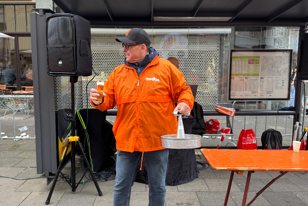 Wir treffen Dirk, die rheinische Frohnatur, heute als 5:30er-Pacer im Einsatz, und einige andere bekannte Marathonsammler. Isabel spricht mich auf meine Filmkamera an. Sie sei auch schon mit so einem Gerät gelaufen, aber heute benutze das ihr Vater mit einer langen Stange an der Strecke. Und den werde ich mehrmals sehen.