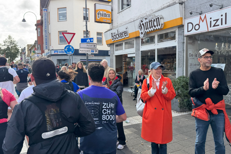 Wir stärken uns mit einer Pizza am Hauptmarkt, dann geht’s weiter ins Hotel im 40 km entfernen Eschweiler. In Köln findet aktuell nämlich die „Anuga“ statt, die größte Ernährungsmesse der Welt, was die Hotelpreise in schwindelnde Höhen treibt. Am Sonntag hören wir von einigen Marathonis, dass auch sie irgendwo weiter weg übernachtet haben. Wer den Marathon Majors hinterherjagt, wird für derartige Probleme aber nur ein müdes Lächeln übrighaben. Tokio, London und New York rufen da noch ganz andere Preise auf.