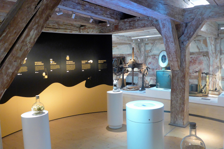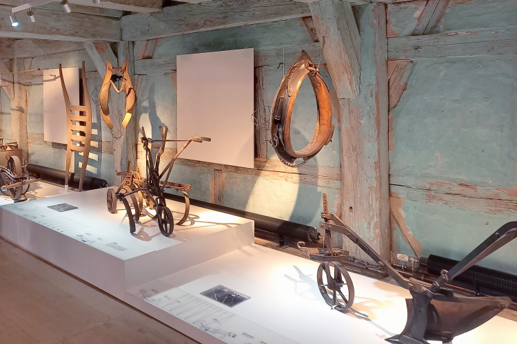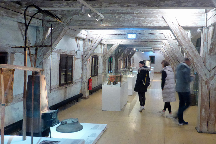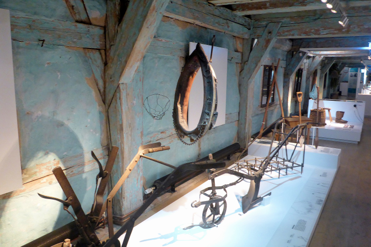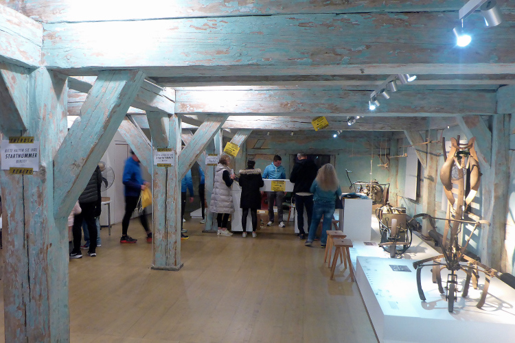 Start- und Ziel befinden sich vor und in der Erlebniswelt HopfenBierGut, einem Museum rund um die Hopfen- und Bierkultur im fränkischen Seenland. Im ehemaligen Kornhaus darf der Hügelland Trailrun fast die gesamte Location nutzen. Mein erster Weg führt in den zweiten Stock, wo wir in einer imposanten Innenkonstruktion aus uralten Balken von 17 – 20 Uhr unsere Startunterlagen empfangen können. Wow, wirklich spektakulär und wunderschön. Der Fachwerkbau wurde 1457 errichtet und von 1897 bis 1984 als Hopfenlager genutzt. Nach einer aufwendigen Renovierung wurde auf 1200 m2 die Welt des Hopfens und des Bieres erlebbar gemacht. Hier oben gibt es alte Gerätschaften und alles, was mit Hopfen zu tun hat, zu bewundern.