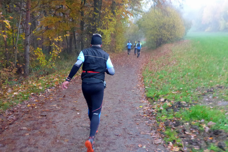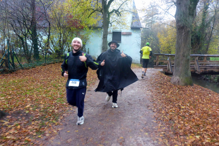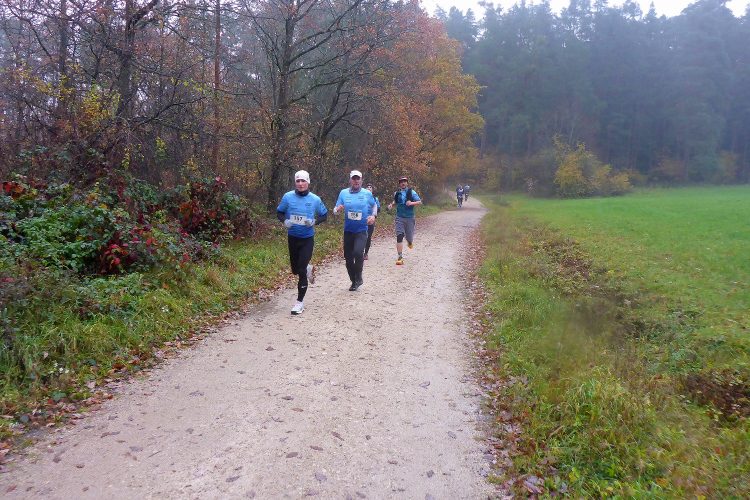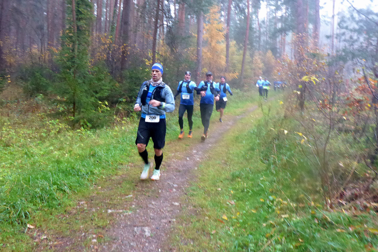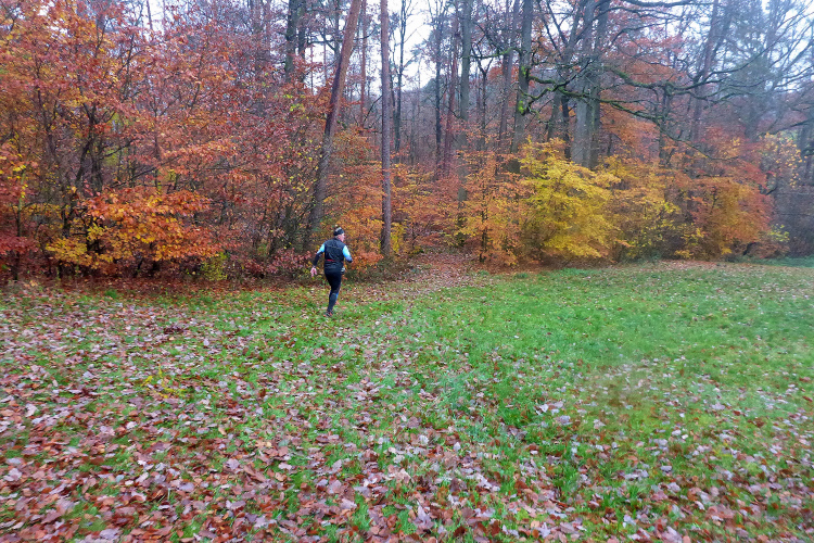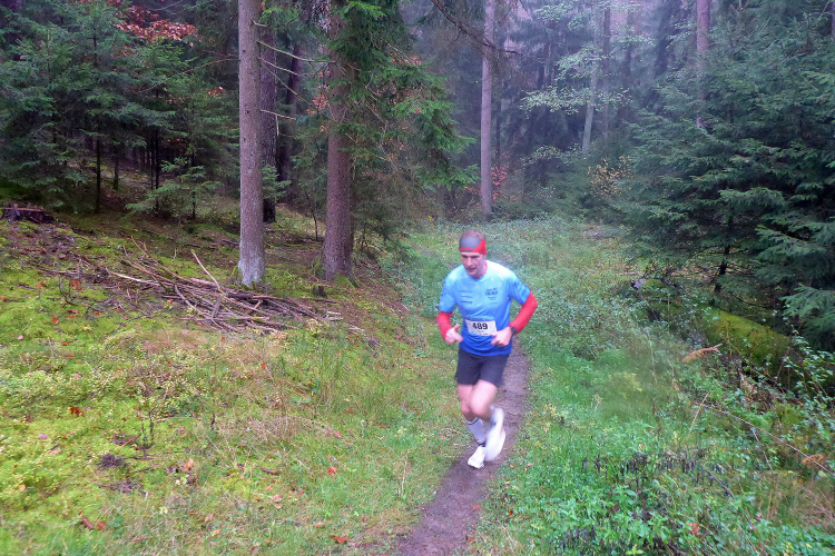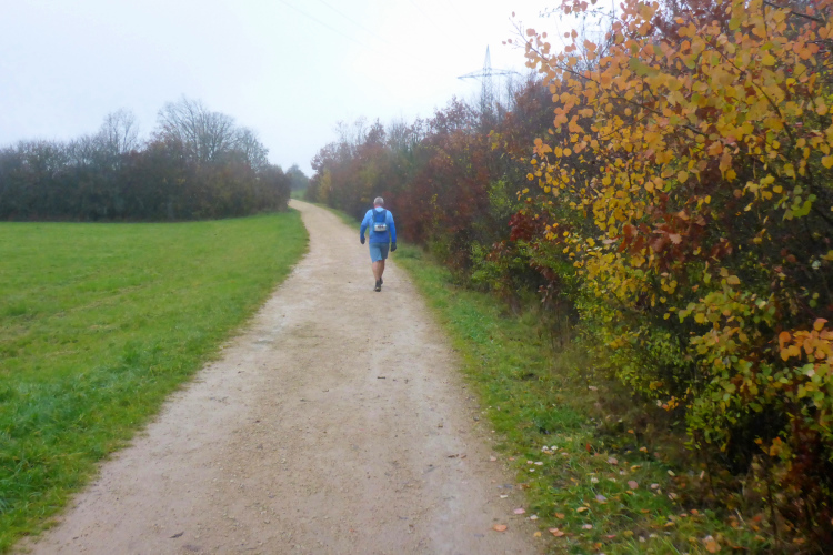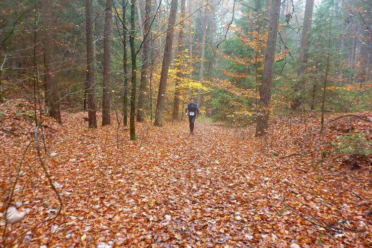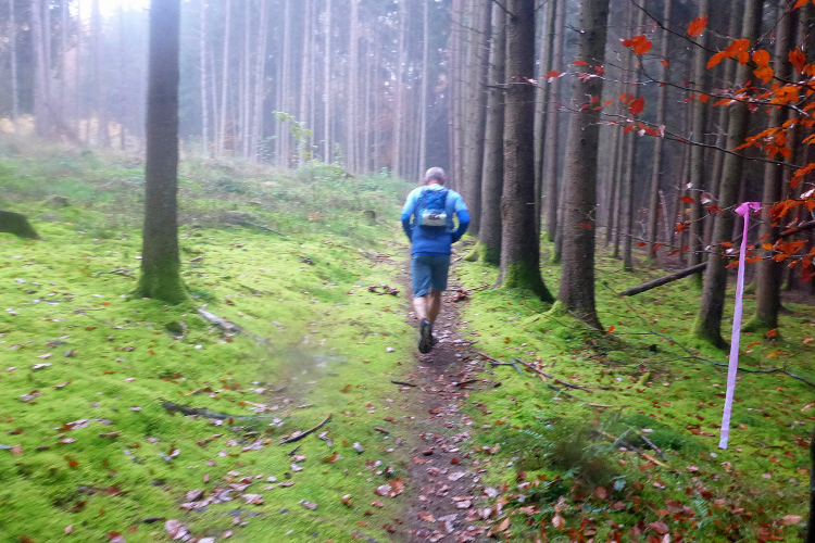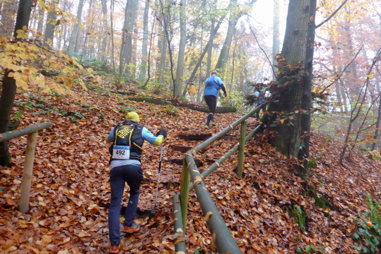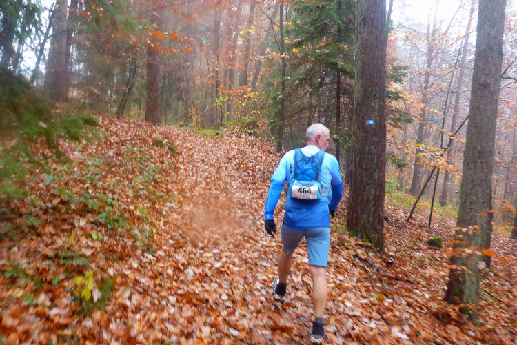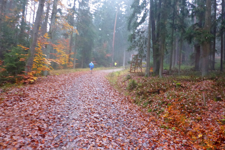 Wenn ich richtig gezählt habe, komme ich heute auf neun Irrläufer, woran ich aber wohl selber schuld war. Die Strecke war korrekt ausgeschildert, aber die Wetterbedingungen mit viel Nässe heute sehr schwierig, besonders für Brillenträger. Dazu kommt die Jahreszeit, das Laub liegt jetzt nun mal sehr hoch. Empfehlenswert ist in jedem Fall, sich den GPX-Track auf seine Uhr oder Handy zu laden. Für alle Strecken werden sie vom Veranstalter zur Verfügung gestellt.
