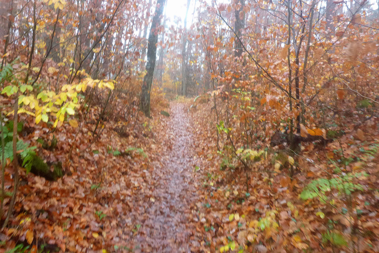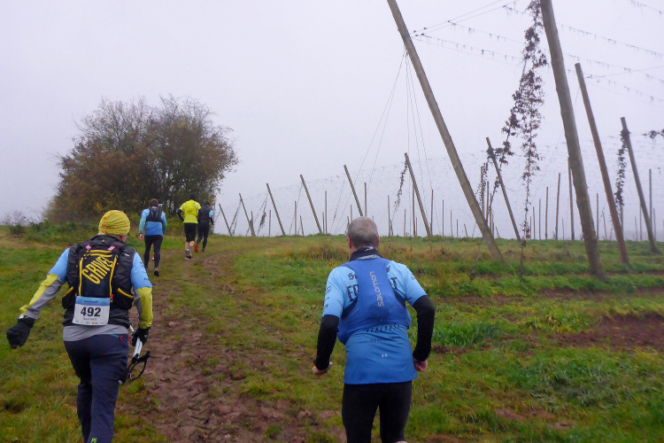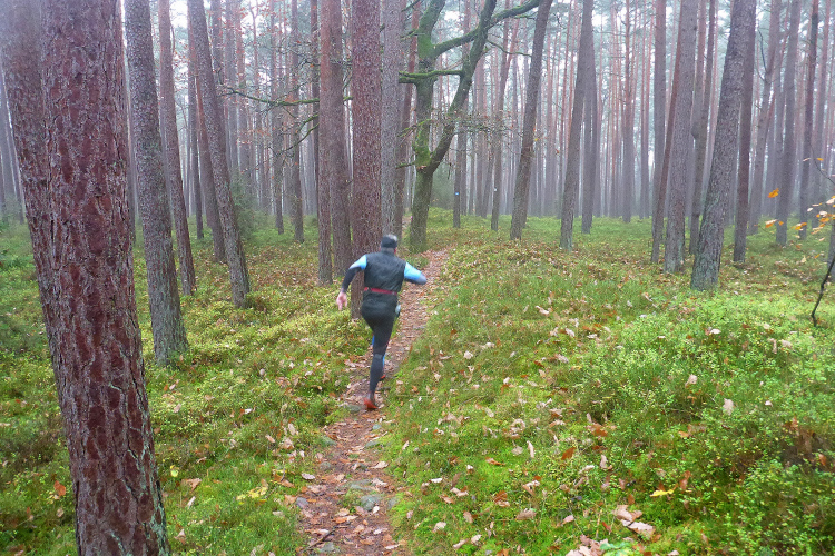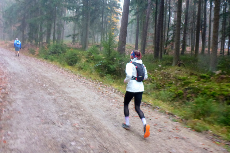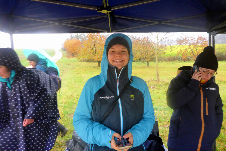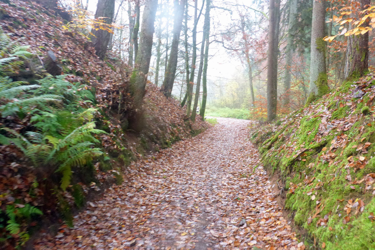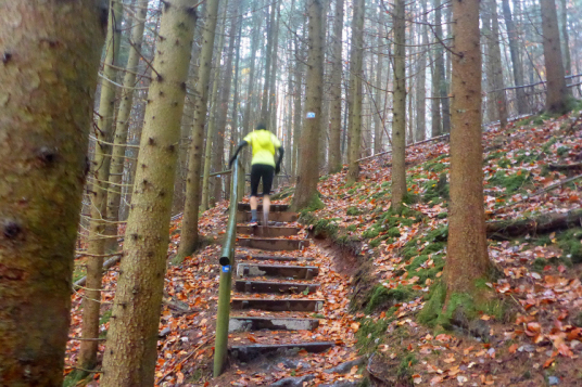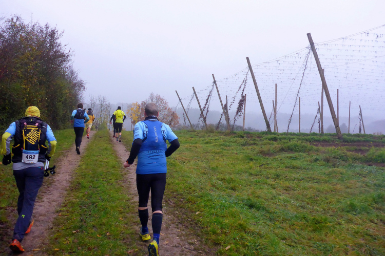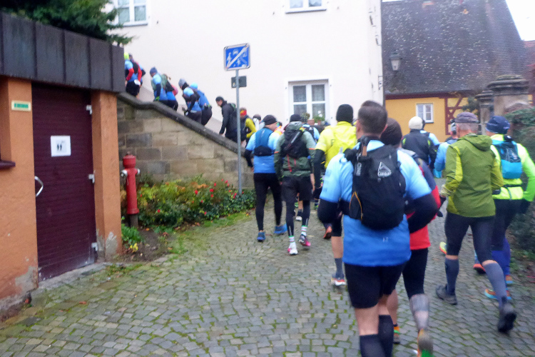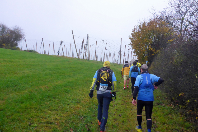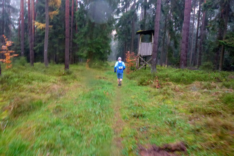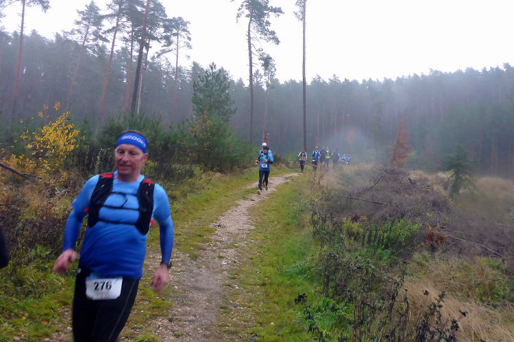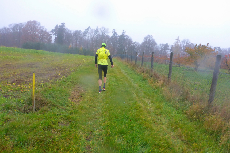 Wenn ich richtig gezählt habe, komme ich heute auf neun Irrläufer, woran ich aber wohl selber schuld war. Die Strecke war korrekt ausgeschildert, aber die Wetterbedingungen mit viel Nässe heute sehr schwierig, besonders für Brillenträger. Dazu kommt die Jahreszeit, das Laub liegt jetzt nun mal sehr hoch. Empfehlenswert ist in jedem Fall, sich den GPX-Track auf seine Uhr oder Handy zu laden. Für alle Strecken werden sie vom Veranstalter zur Verfügung gestellt.