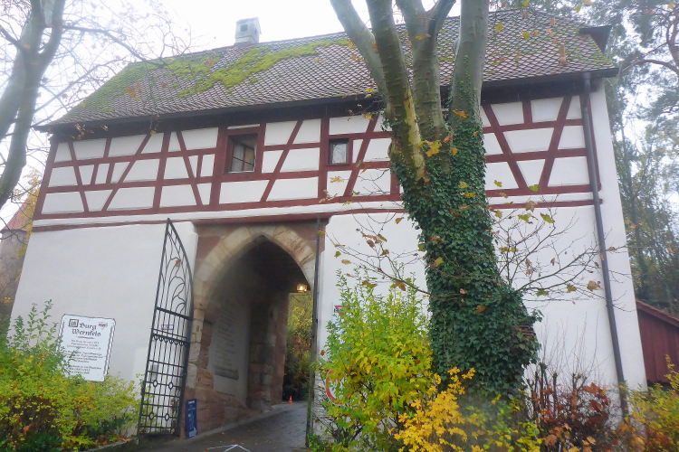 Höchstkonzentriert und sensibilisiert, ja keine Markierung zu übersehen, schaffe ich es doch tatsächlich ohne weitere Fehlleistung bis Wernfels. Beim Aufstieg zur Burg verpasse ich aber wieder die Abzweigung auf den Trail, der nach oben führt. Zurück will ich nicht mehr, auch die Straße führt bestimmt zum Burgeingang, denke ich mir. So ist es dann auch, mit wenig Umweg komme ich am Burgtor an, das Karl gerade wieder verlässt.