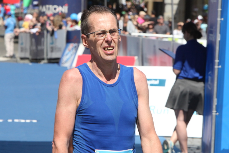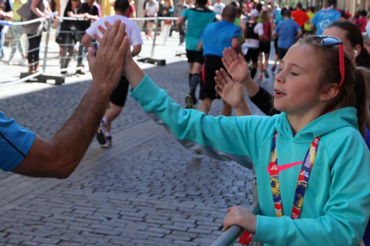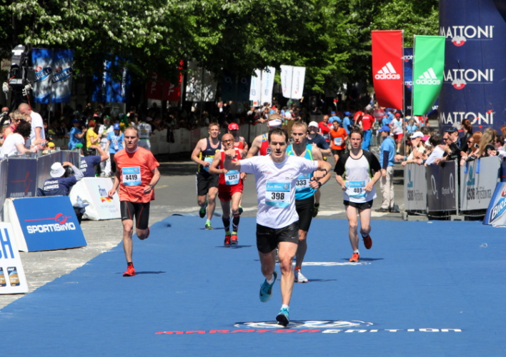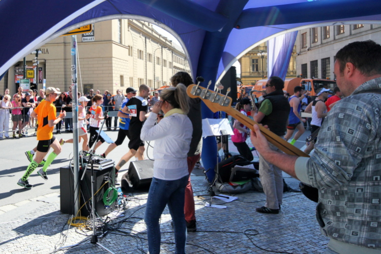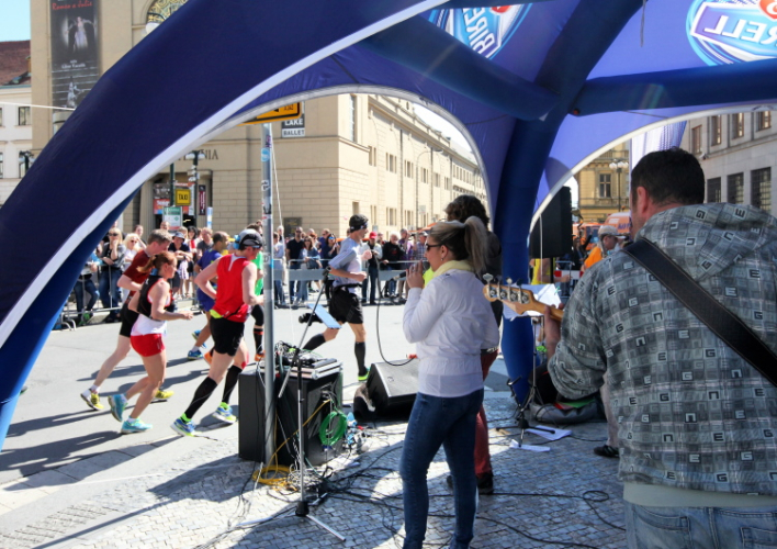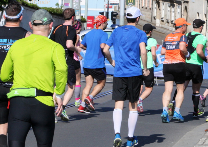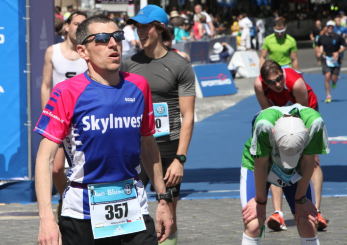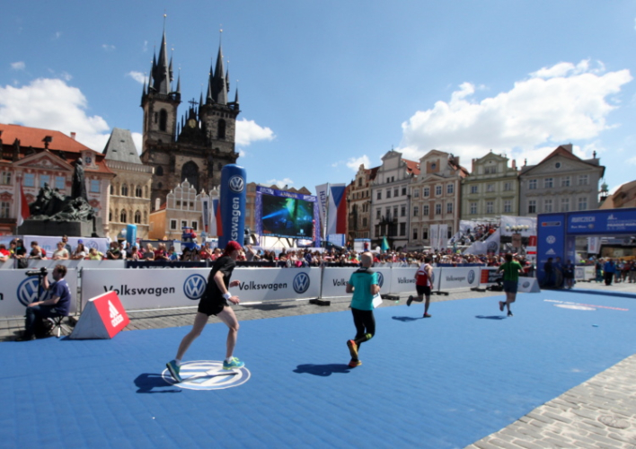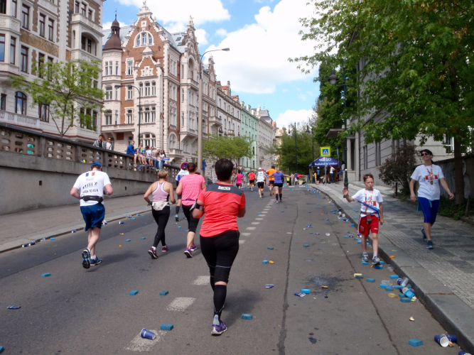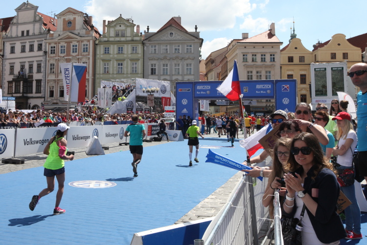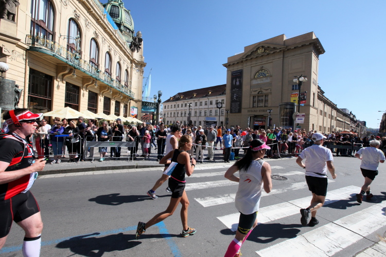 Trotz kurzen Gehpausen tut es gut zu wissen: Gleich ist es geschafft. Und einen Kilometer vor dem Ziel bin ich noch so klar im Kopf, dass ich merke, dass ich durchlaufend problemlos das Ziel sub fünf Stunden erreichen werde. So ist der dritte Lauf über die Pařížiská zum Altstädter Ring – zum zweiten Mal in dieser Richtung – ein Hochgenuss. Welch ein Zieleinlauf – immer noch herrscht auf dem Platz eine Riesenstimmung!