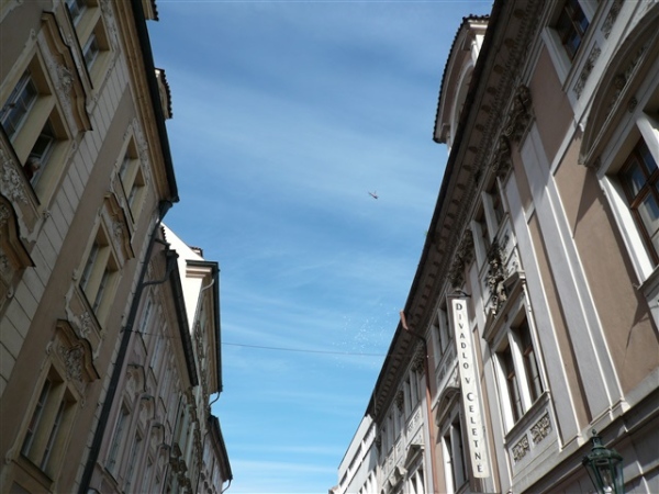 Auf der Altstädter Seite sind nach Überquerung der Karlsbrücke gerade mal 200 m zurückzulegen, bevor auf der schon dritten von heutigen sechs Brücken („Manes-Brücke“, Mánesův most) erneut die Seite gewechselt wird. Um die 180 Brücken weist das komplette Stadtgebiet auf, davon 15 große über die Moldau. Erst vier km haben wir hinter uns, aber was schon alles gesehen, es ist schlicht überwältigend. Wer im Folgenden nicht ganz genau aufpaßt, kann versäumte Eindrücke später nachholen, denn km 4 ist identisch mit km 33, heißt: die nächsten neun km sind zweimal, und das in der gleichen Richtung, zu durchmessen.
