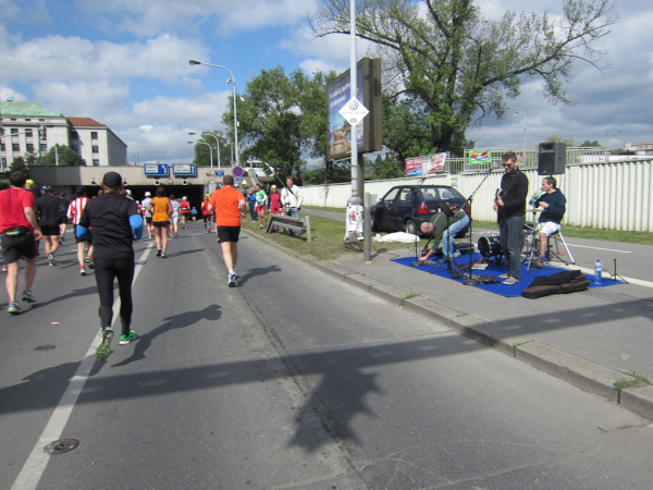 Bearing in mind that I have to run here again at kilometer 38 my imagination of Prague in an oil painting is somewhat fading away. Thus all the more we are pleased to hear the sound of another fantastic band heating up both runners and the crowd.