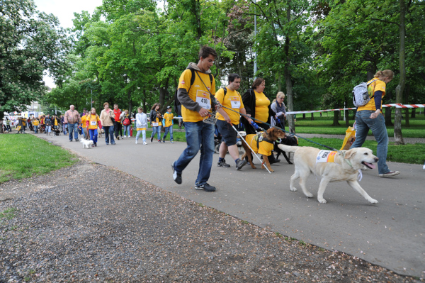One dog looks as if he did not care at all while others look afraid and scared to death. We all know the preconception that dogs look like their owners and yet I feel confirmed another time as I observe lordling and mistress standing together in the starting block waiting for the starting signal. And as it sounds dogs and owners start to run. Some seem to run for gold whereas others simply enjoy a relaxing walk. After finishing the 4,2 kilometer course man's best friend get a medal and sponsored food. But not only the dogs were honored today. Participants of the Mini marathon as well as the Skating event over 6,5 kilometer receive a medal.