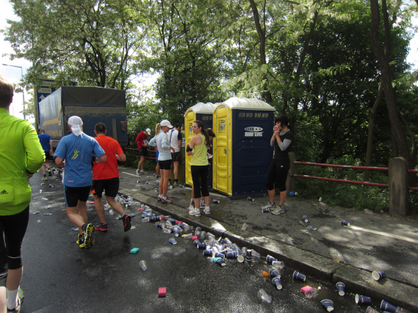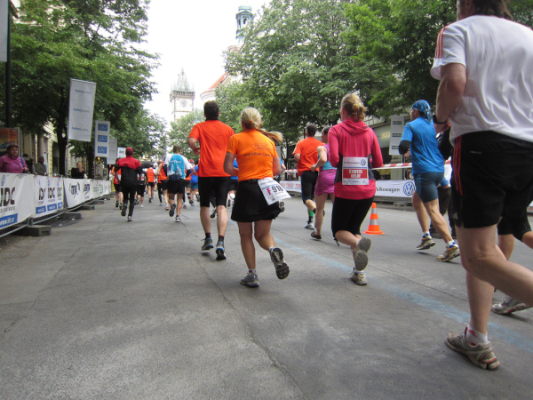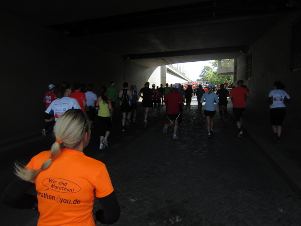Due to the length of a marathon track you get to see streets and areas, which usually are not must-see points for tourists. We see buildings, on which the plaster on the walls is crumbling, and run through alleys with small bars and erotic shops. A bridge above us is part of the urban expressway and we are near the railroad. At this point no city can be distinguished from others.