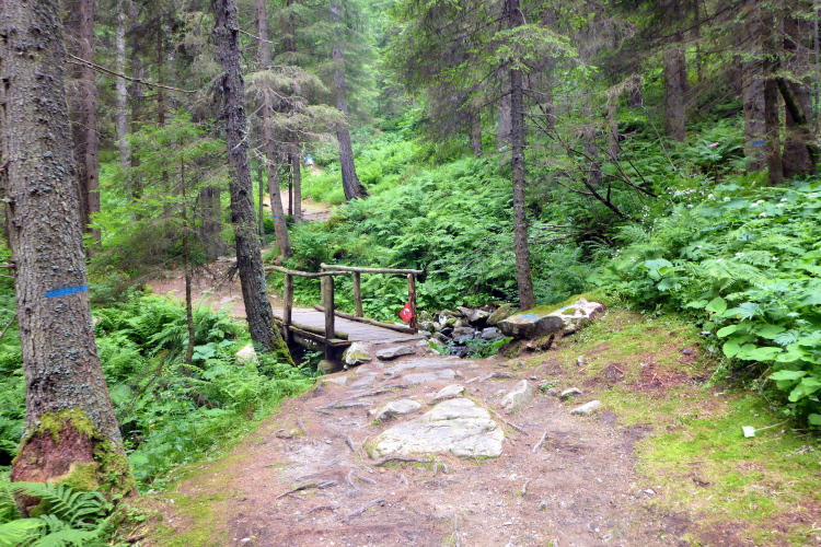 „Sah der Verlauf der Höhenlinien auf dem Infoblatt recht eben aus, zeigt sich nun seit sieben Kilometern, dass auch kleine Anstiege auf den Karten in der Realität die Oberschenkel ziemlich strapazieren. Die Forststraße geht in einen Wanderpfad über, der steil bergauf durch ein Meer von Farnen führt. Immer wieder genießen wir Blicke auf die Gipfel gegenüber. Bei km 23 wartet wieder einmal ein Team der Bergrettung auf uns. Der Läufer vor uns erkundigt sich nach dem weiteren Verlauf: Nur noch ein paar leichte Anstiege, dann immer nur bergab, meint der Helfer.“